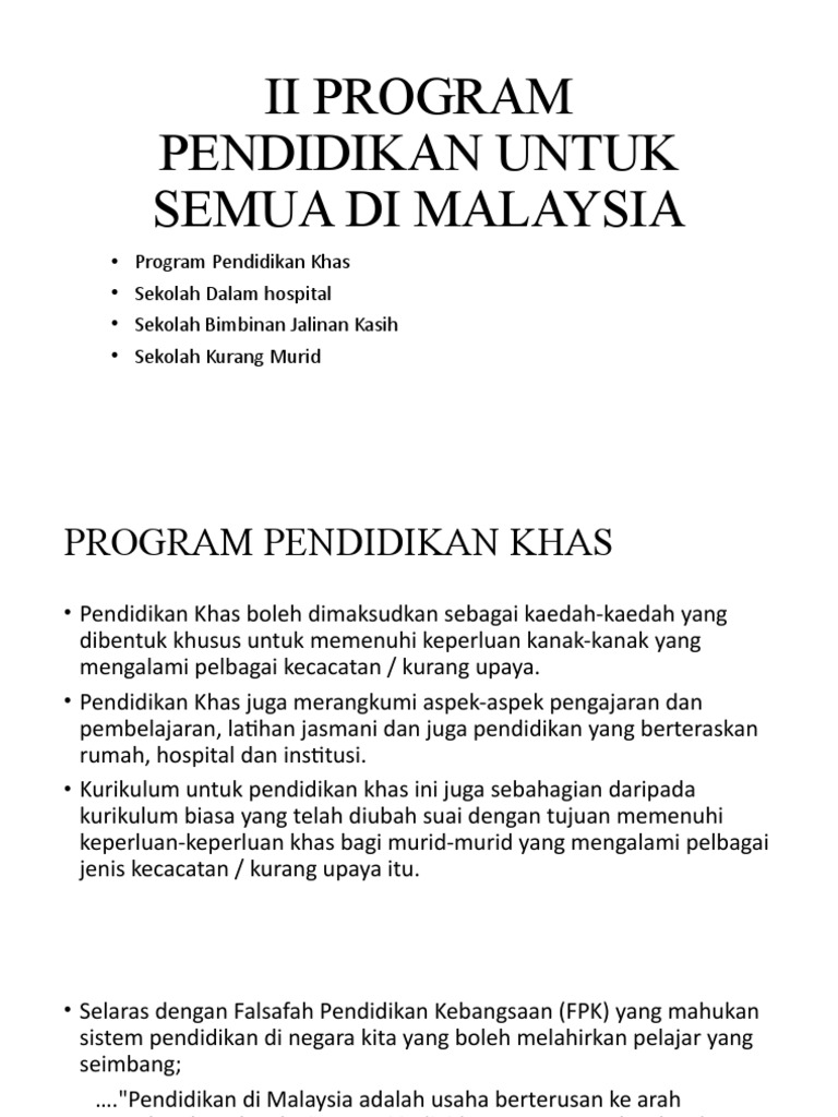 Ii Program Pendidikan Untuk Semua Di Malaysia Pdf